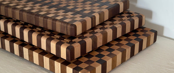 Nuestras tablas están hechas con una combinación de nogal y maple, ensambladas en patrón de grano final (end grain), que ofrece durabilidad, resistencia al filo y una estética inconfundible.